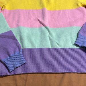EUC English Factory Button Down Cardigan Vibrant cardigan with bold stripes. Features blue, yellow, pink, green, and purple. Perfect for casual outings. Adds a splash of color to your look.