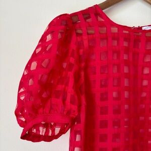 English Factory Windowpane Blouse Small Puff Sleeve Red