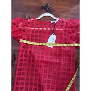 English Factory Windowpane Blouse Small Puff Sleeve Red Size XS NWT