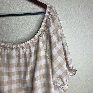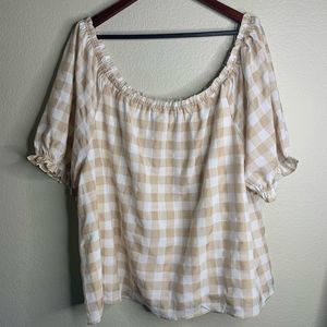 English Factory Women's Cream & White Plaid Off-The-Shoulder Short-Sleeve Blouse Size 2X NWT
