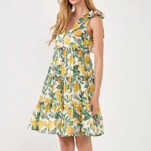 Add a little zest to your wardrobe with this Lemon Print Tiered Mini Dress. Perfect for any summer occasion, this V-neck mini dress is decorated with pretty lemon prints and tiered with ruffle details. The feminine ribbon knot shoulder and center back invisible zipper closure elevate the look of this mini dress. You'll be sure to turn heads and feel confident in this pretty and flirty dress.