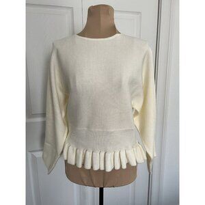 English Factory Women’s Ruffle Edge Sweater Dolman Sleeves Round Neck Ivory Sz S