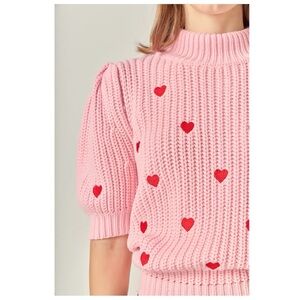 English Factory | embroidered hearts puff sleeve sweater