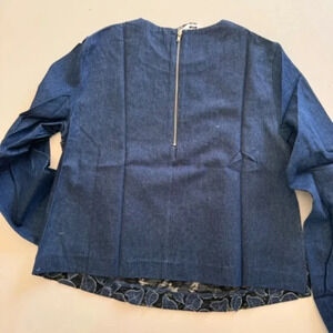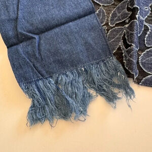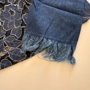 English Factory-Blue-Sheer-Flower- Long Sleeve- Fringe-Bohemian-Romantic- M