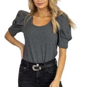 English Factory Pleated Puff Sleeve Top Blouse Size XS Gray Womens