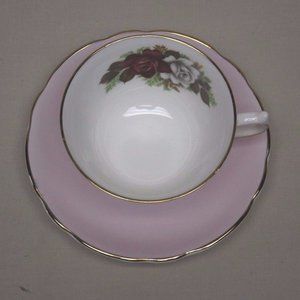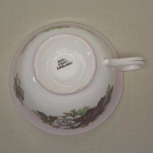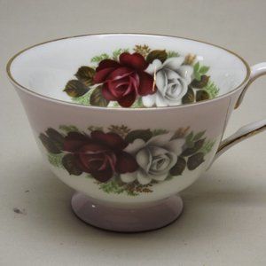 English Fine Bone China Red and White Roses Footed Tea Cup and Saucer