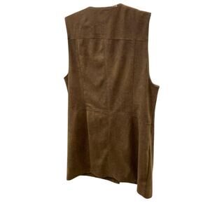 Brown faux suede zip-front vest, new with tags. Long-line silhouette with tailored seams and side pockets. This piece channels English countryside heritage and the Lydia Mullen equestrian-preppy look that blends seamlessly into Oak Bluffs, Hamptons, and runway 2025 styling. Perfect layered over crisp blouses, sweaters, or dresses, and versatile enough for both fall and spring wear. Style with riding boots, denim, or bolo ties from my closet for equestrian or festival looks. Great for Thanksgiving gatherings, winter holidays, and transitional layering.