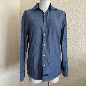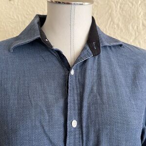 English Laundry Blue Herringbone Button Front Shirt Medium 15 15.5 x 34-35