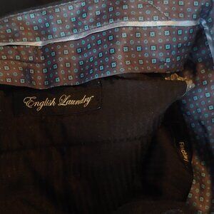 English Laundry, 36 inches waist, waist runs small, blue patterned dress slacks, in excellent condition, material is 78% polyester and 22% rayon, machine wash cold, warm iron if needed. Spring, fall winter use.