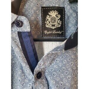 English Laundry Dress Shirt Mens L Large Blue Flip Cuff Button Up Business
