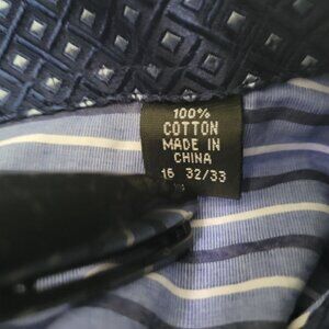 This shirt from English Laundry offers a stylish blue and white striped design. Crafted from 100% cotton, it features a comfortable fit and detailed cuffs, making it suitable for both business and casual settings.
