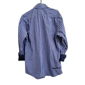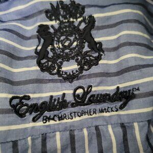 English Laundry Dress Shirt Mens Size 16 Flip Cuffs Blue White Striped Long Slee