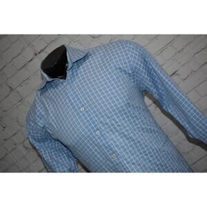 English Laundry Dress Shirt Mens Size Large Blue Plaid Geometric Flip Cuffs