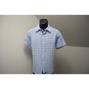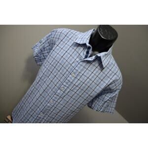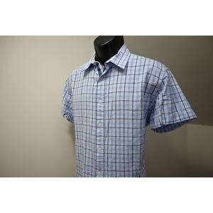 English Laundry Dress Shirt Plaid Linen Blend Short Sleeve Mens Size Large