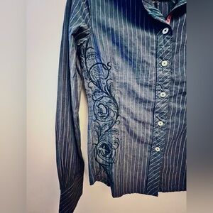 #englishlaundry #englishrose #pinstripeshirt #cowgirlvibes #urbancowgirl #moderncowgirl #westernshirt #modernwestern #urbanwesterngal #embroidered #embroidery #embroideredfloral #velvetdetailing #pinkvelvettrim #midnightcowboy #twostepping #westernvibe #concertvibes #stagecoach #stagecoachvibes #festivalvibes