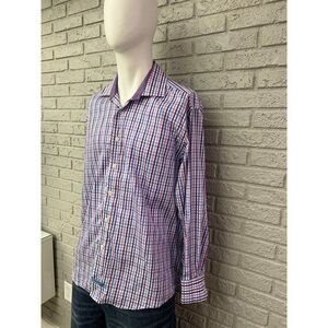 English Laundry Men Purple Checked Long Sleeve Shirt Size 17 (34/35)