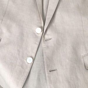 This beige linen blazer by English Laundry offers a polished look for professional or semi-formal settings. Lightweight fabric ensures breathable comfort with a tailored fit.