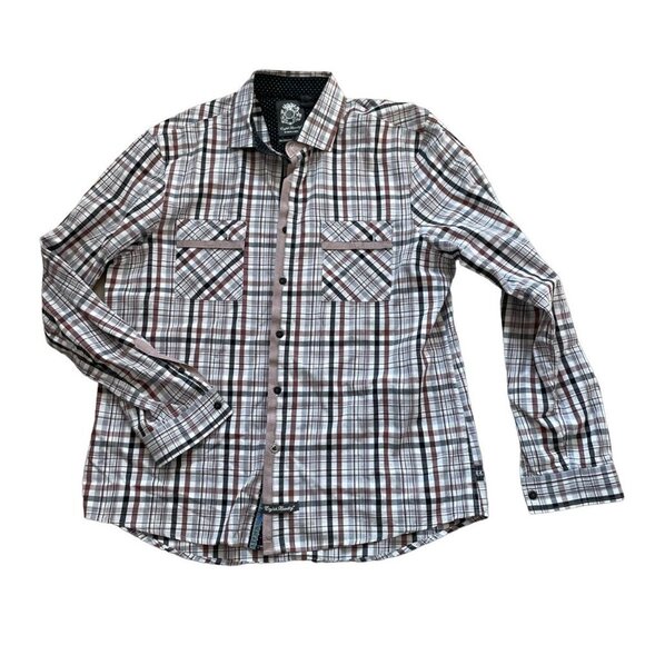 English Laundry Men's Blaque Label Button-Up Shirt Pockets Plaid Multicolor Large
