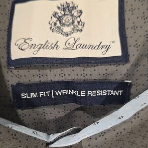Stylish button-down shirt by English Laundry. Features a subtle blue and gray pattern. Ideal for casual outings.