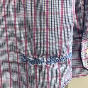 English Laundry Men's Button Up Shirt Large Striped Blue and Pink