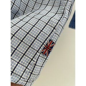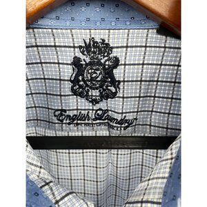 English Laundry Men's Size 16 34/35 Blue Plaid Long Sleeve Button Up Flip Cuff