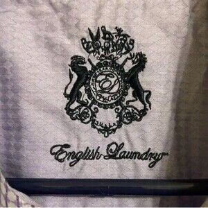 English Laundry Men's Sz 18.5 38/39T Purple Diamond Button Up Dress Shirt Flip