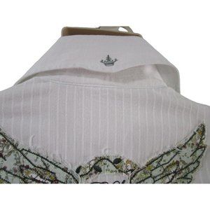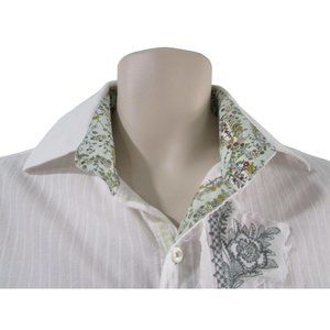 English Laundry Mod Mens Med Button Up Casual Embroidered Applique Flip Cuff EUC
