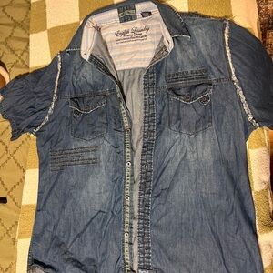 Stylish denim shirt by English Laundry. Lennon/MCartney Penny Lane Demin Button Up. Included Penny Lane by The Beatles Lyrics embroidered onto shirt.