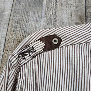 English Laundry Vintage Y2K Brown and White Pinstripe Embroidered Button Down Sh