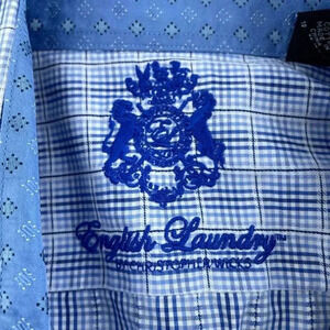 English Laurdry Shirt Long Sleeve Button Down Mens L Blue 1547