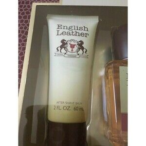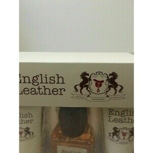 English Leather by Dana 3pc Fragrance Gift Set Cologne After Shave Balm Body Wash NEW. The box is bent/torn in places due to shipping and handling.
