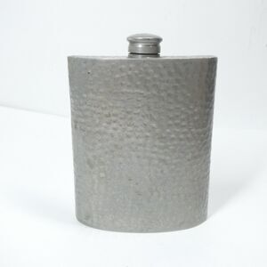 Vintage English pewter flask. Features hammered finish, cork-lined cap. Capacity is 6 ounces. Good shape with some surface wear as shown. No monograms.