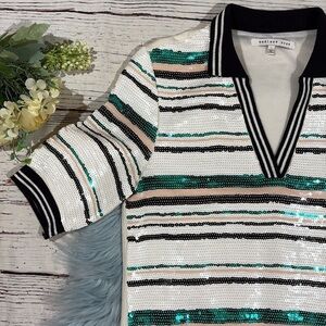 English Rose Rugby Striped Sequin Polo Mini Dress. This dress is in great used condition