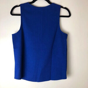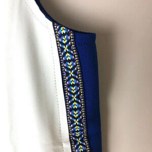 White faux leather front tank by English Rose (Boutique Brand). Size Small. Embroidered panel on the side. Fabric blue back. Sleeveless.