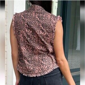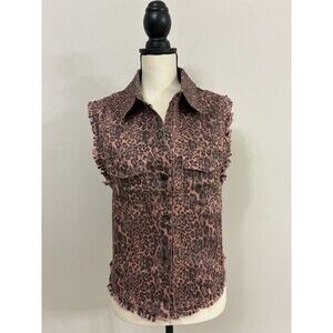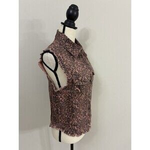 English Rose Womens Animal Print Sleeveless Vest Beaded Collar NWOT Size M/L