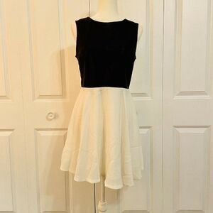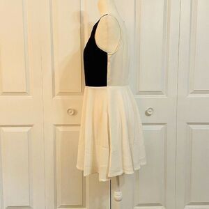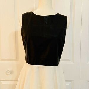 English Rose Sleeveless White Black Vegan Leather Fit and Flare Dress Large