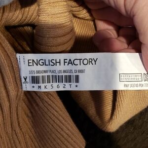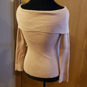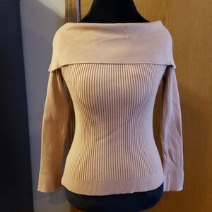 Nice tan ribbed sweater with wide cowl neck can be worn rolled or over shoulder as pictured excellent condition by english factory size small