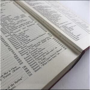 All pages are in good condition, except first page- see photo. No missing pages. The book is worn, the cover is worn around the edges and the outer binding. Normal wear for its antique age. The corners of the cover are bent.