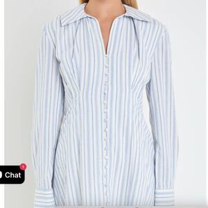 English Factory Blue and White collar Striped mini shirt dress size small NWOT