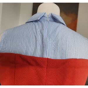 Chic dress with vibrant red and blue stripes. Ideal for everyday wear.