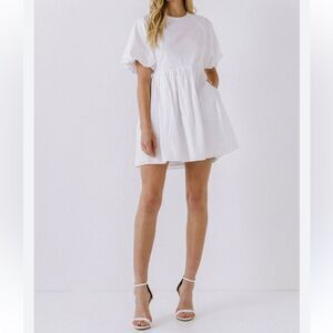 English Factory White Baby doll Mini Puff Sleeve White Dress(Size Large)