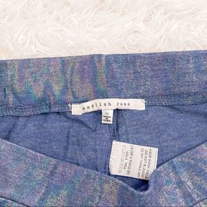 English Rose Blue Shimmer Iridescent High Rise Leggings w/Stars; SZ M; BNIP