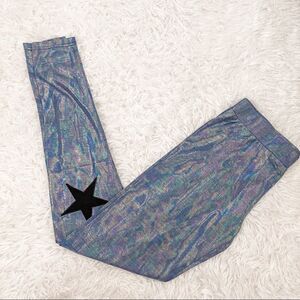 English Rose Blue Shimmer Iridescent High Rise Athleisure Leggings w/Stars; SZ M; BNIP