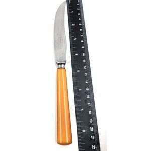 Englishtown Cutlery Sheffield England Set of 6 Orange Bakelite Stainless Steak Knives