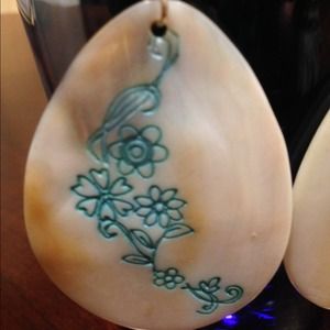 Shell earrings that are engraved with a flower design with turquoise painted in the engraving. ***all earrings are $5 each or bundle 3 for $12 *** any question please feel free to ask just message me :)