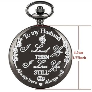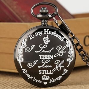 Engraved Vintage Quartz Pendant Pocket Watch to my Husband with clip chain