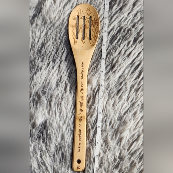 Beautifully engraved bamboo wooden spoon with floral design. Perfect for cooking or as a decorative piece.