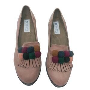 Engye Italia Blush Pink Suede Loafer With Pom Poms 10