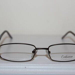 These Enhance Eyewear frames are straight from the manufacturer and have never been worn. The glasses have demo lenses in them with no prescription and can be taken to an eye doctor to get a prescription put in them. The frames are made from light weight, durable metal. The nose pads are adjustable to fit any nose shape and can be replaced if they break.