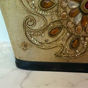 Enid Collins Vintage Jeweled Purse Canvas, Wood, Leather